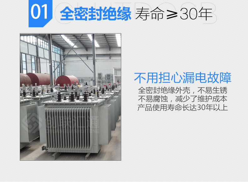 4.變壓器為全密封結構,延長使用壽命,免吊芯,免維護。